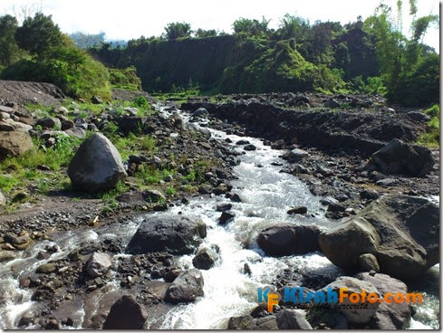 Susunan paasir dan batuan yang alami, ditambah pohon bambu di tengah-tengahnya membuat pemandangan di sabo dam Kali Apu ini begitu indah dan dapat menghilangkan sejenak beban yang ada dipikiran