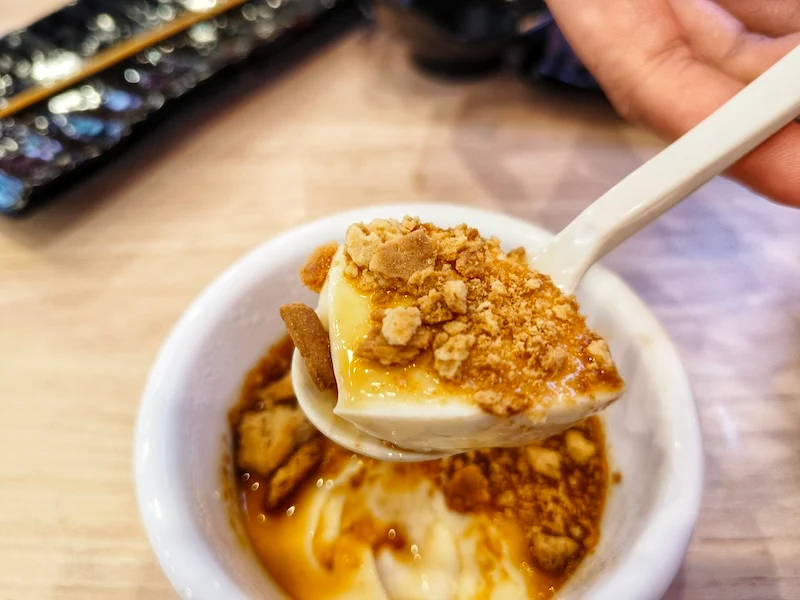 Sebagai penutup, aku pesan dessert pudding yaitu "Hokkaido Milk Puding". Ini bisa disajikan setelah kita selesai makan berat loh. Jadi pas disajikan masih tetap dingin dan enak. Pudingnya lembut buanget dengan taburan biskuit diatasnya dan ada gula merahnya juga. Rasanya manis yang teramat manis. Tapi enak, tapi kemanisan banget, gimana tuh 😁. Rewel banget emang lidahku ini ckckc.